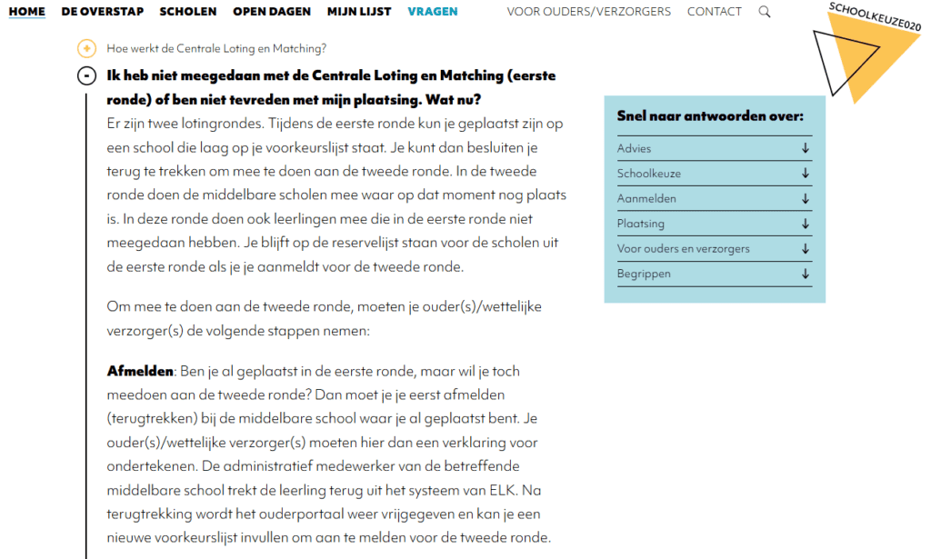 Hieronder delen we de informatie vanuit ELK over de tweede ronde. Je vindt deze ook op schoolkeuze020.nl